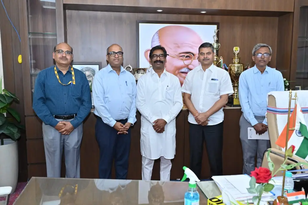 Ranchi, Director General of the National Informatics Centre (NIC) Shri Abhishek Singh, Deputy Director General Shri Deepak Kumar, and Scientist-‘F’ Shri Omesh Prasad Sinha paid a courtesy call on Chief Minister Shri Hemant Soren today at the Chief Minister’s chamber in the Jharkhand Assembly. On this occasion, Chief Minister Shri Hemant Soren released a “Coffee Table Book” prepared by the National Informatics Centre. This book presents a detailed description of various e-governance projects, digital initiatives, and innovations operated by NIC in the state of Jharkhand. Chief Secretary Shri Avinash Kumar was also present on this occasion.